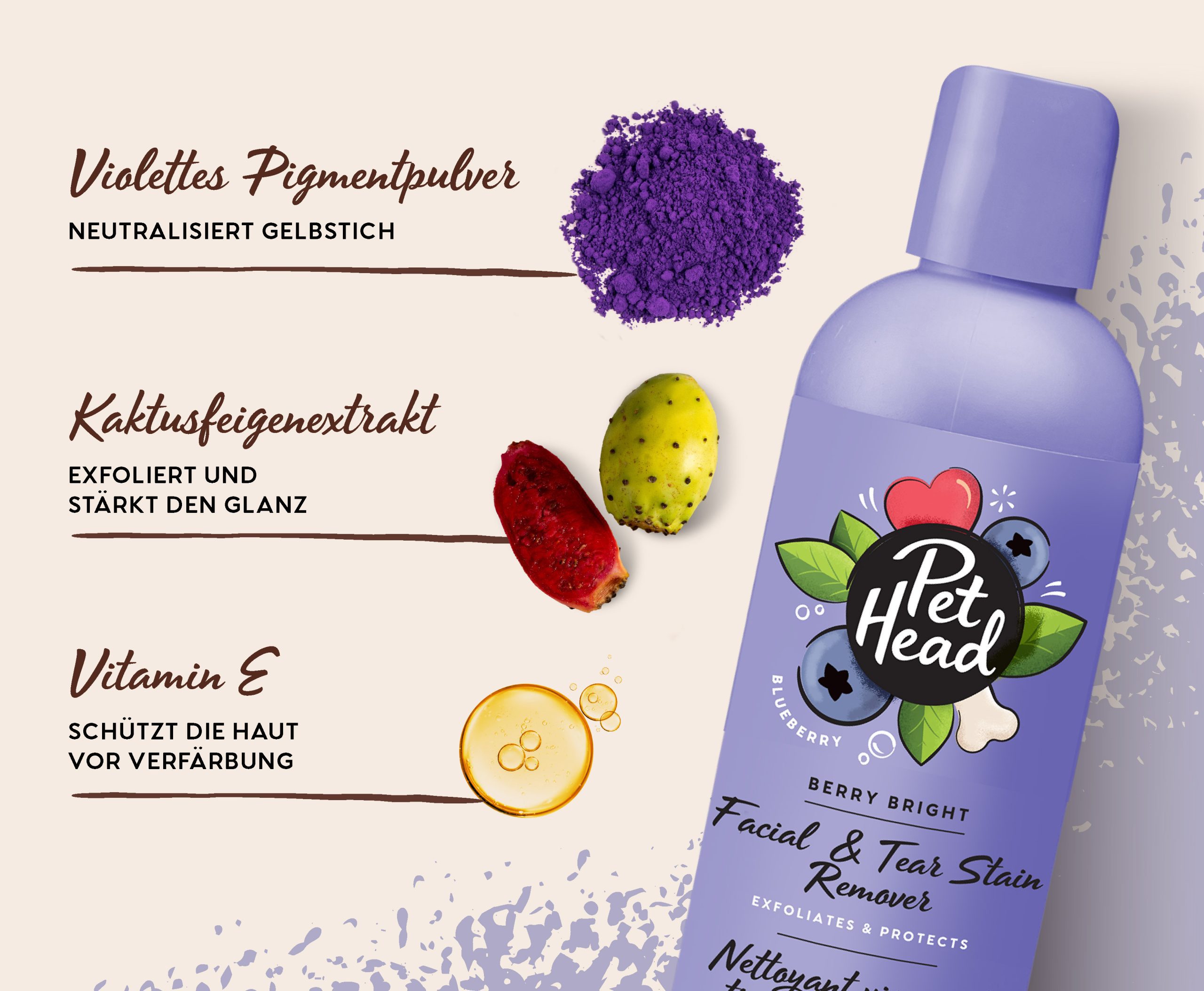 Was ist in unserem Pet Head Berry Bright Gesichts- und Tränenfleckenentferner enthalten?