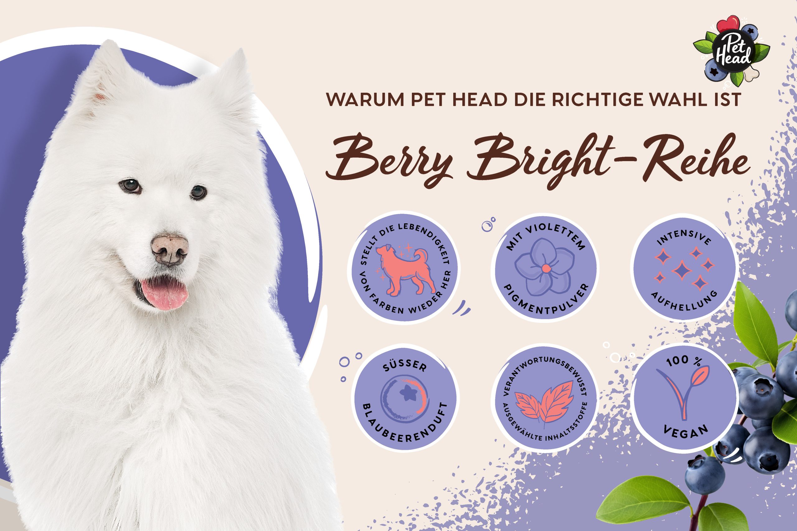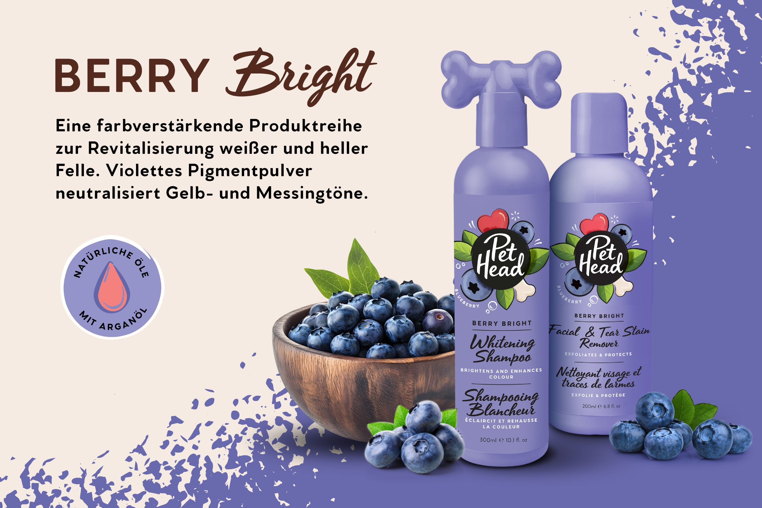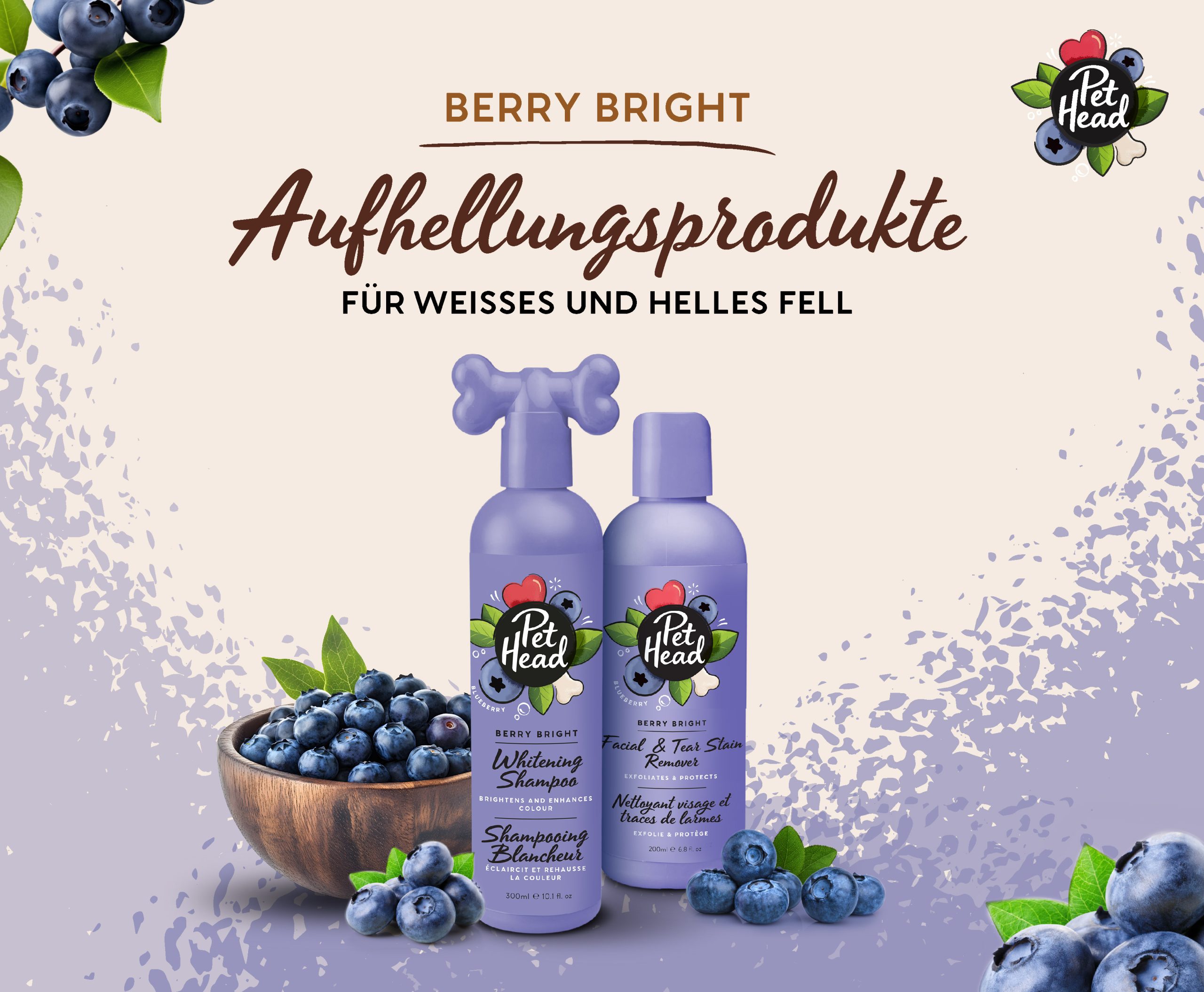 Auf jeden Fall. Berry Bright lässt sich hervorragend in die gesamte Pflegeroutine deines Hundes integrieren. Du kannst es mit allen unseren Conditionern oder Sprays kombinieren – bei weißen oder hellen Hunden empfehlen wir jedoch besonders die Kombination mit dem Whitening-Shampoo der Serie.