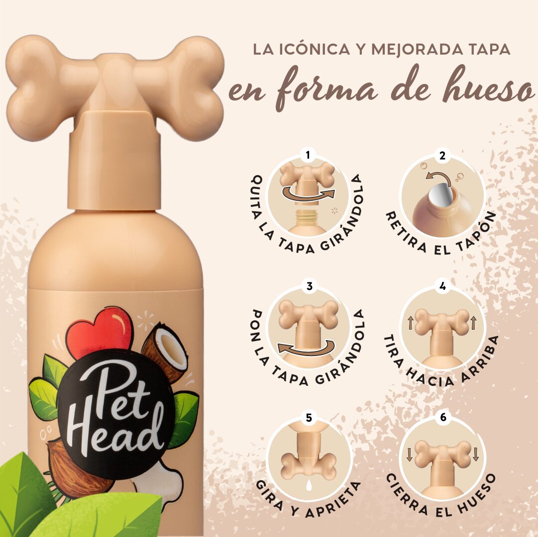 Ningún producto Pet Head contiene nocivos parabenos, surfactantes o colorantes. Sin gluten ni frutos secos, por seguridad. Somos transparentes: todos los ingredientes figuran en el envase. Pet Head se enorgullece de ser vegana y evitar la crueldad.