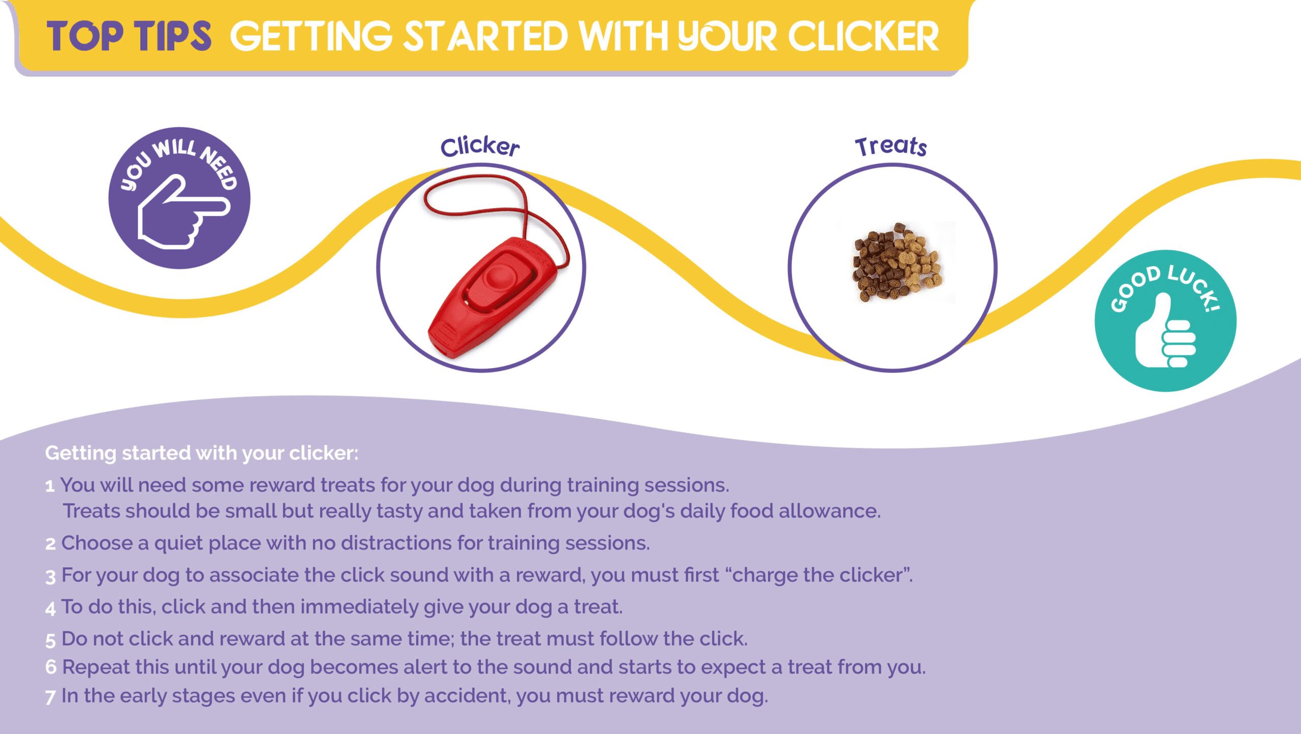 Los perros adoran este divertido método de adiestramiento basado en recompensas. Los clickers son ideales para perros de todas las edades.
