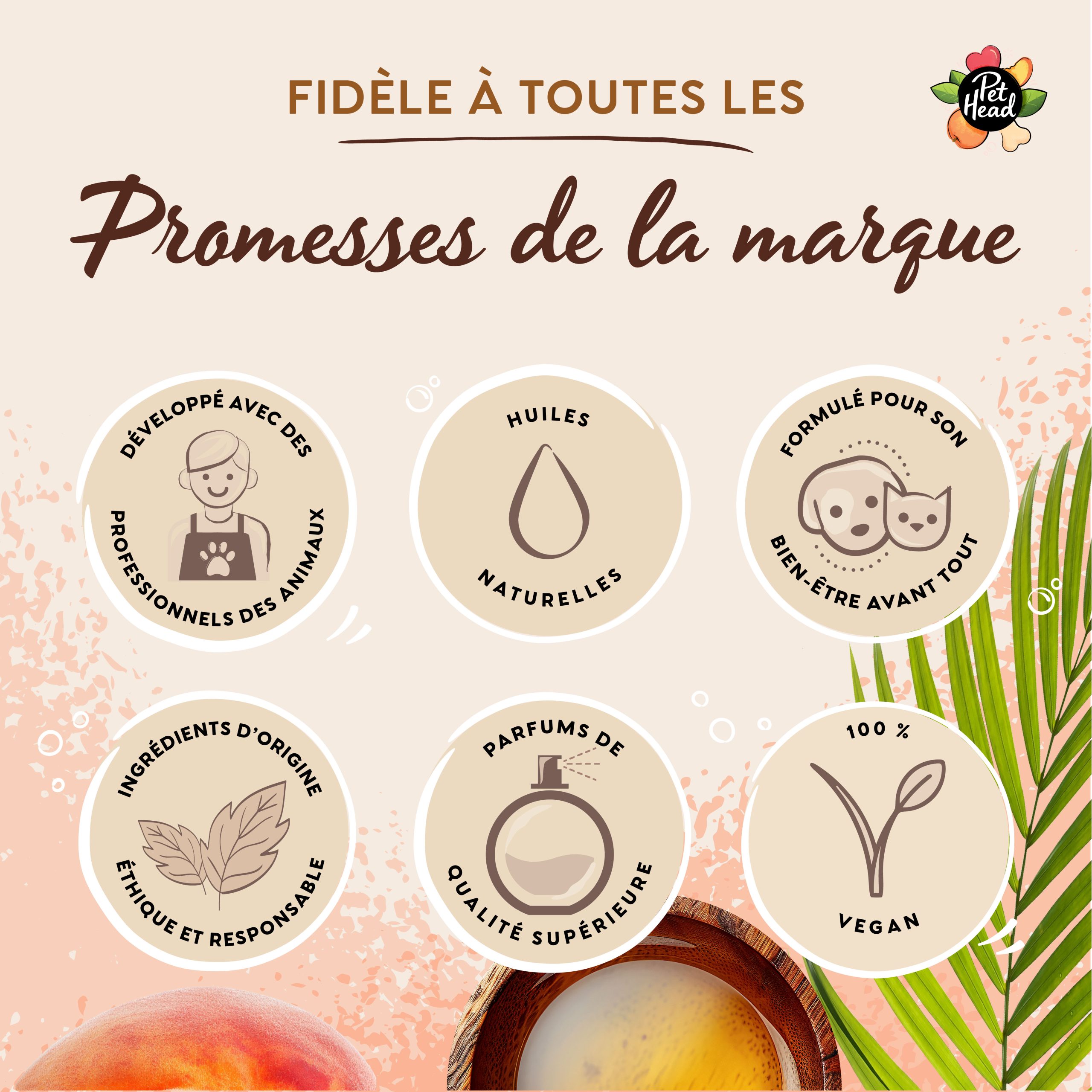 Rendez-vous sur la page de la marque Pet Head pour découvrir le détail des ingrédients de chaque gamme. La liste complète figure également à l’arrière du produit.