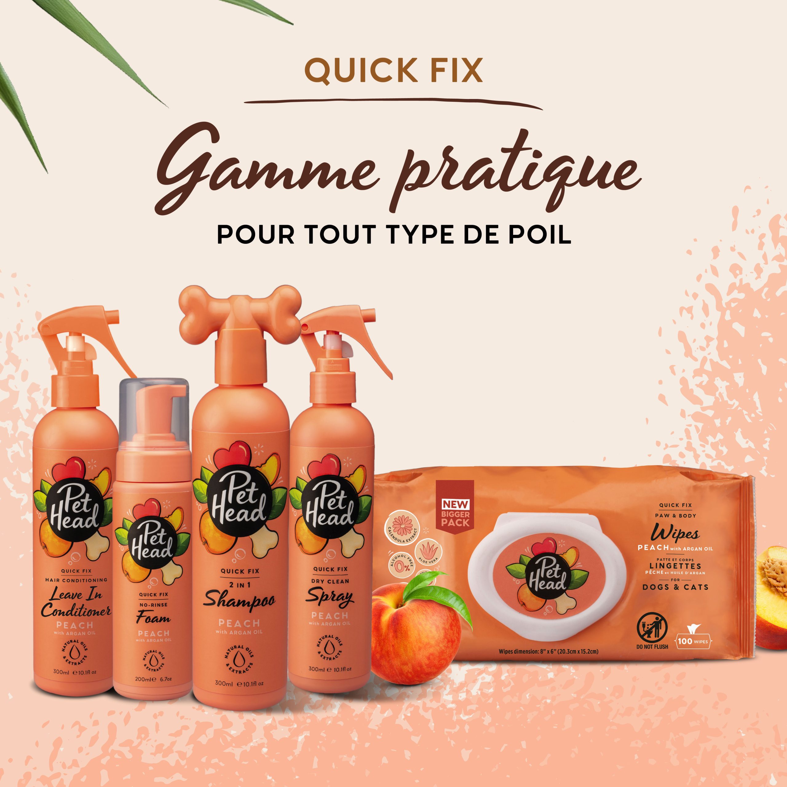 La gamme Quick Fix est parfaite pour les journées bien remplies ! Cette gamme a été pensée pour rafraîchir le pelage entre deux bains sans effort. De la même manière, nos lingettes ou la mousse sans rinçage s’utilisent en quelques secondes pour une propreté éclatante.