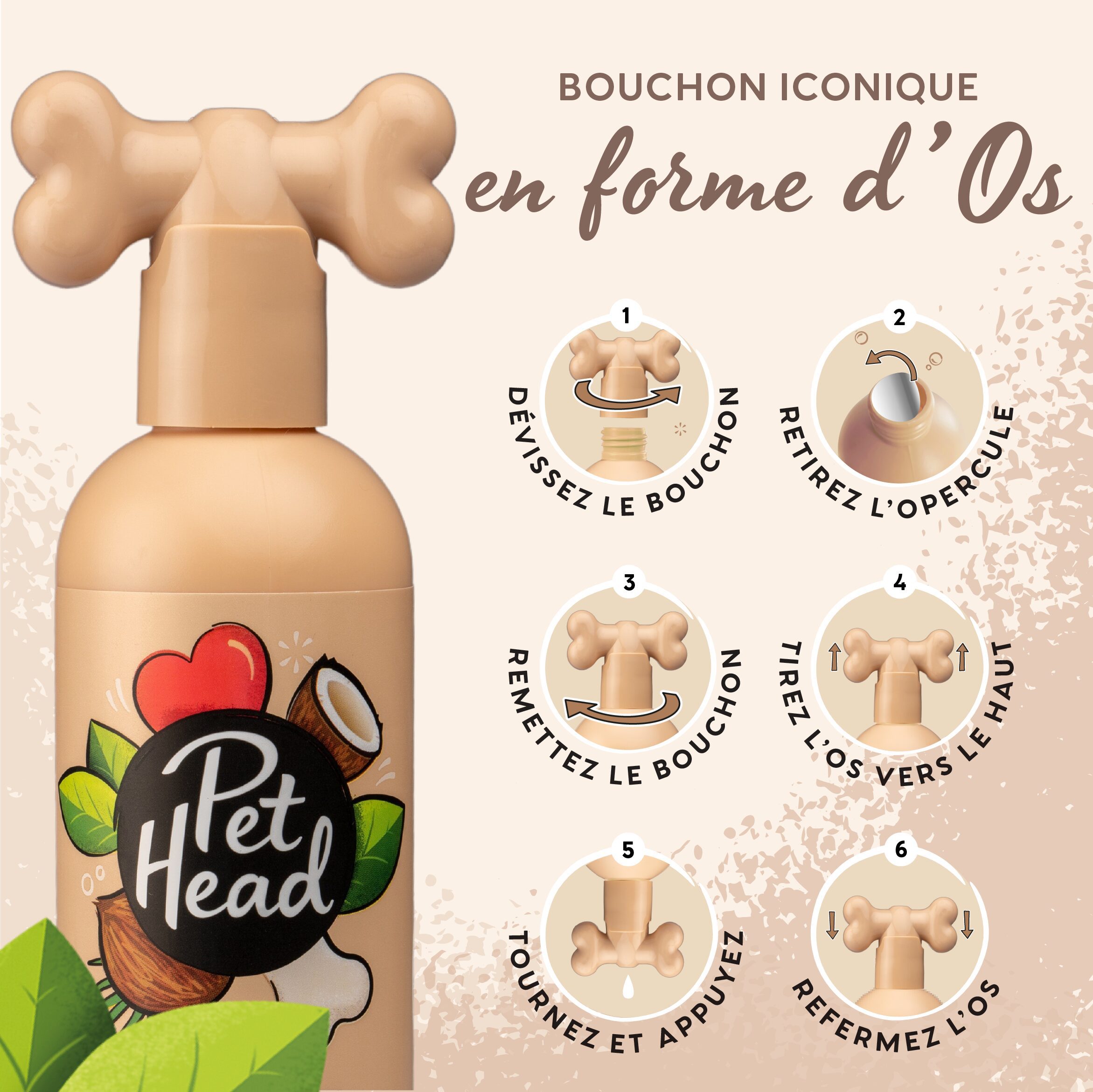 Les produits Pet Head ne contiennent aucun ingrédient nocif : ils sont formulés sans parabènes, tensioactifs ou colorants. Produit sûr, sans gluten ni fruits à coque. Par souci de transparence, la liste complète des ingrédients est imprimée sur l’emballage. La marque Pet Head est fière d'être végane et non testée sur les animaux.