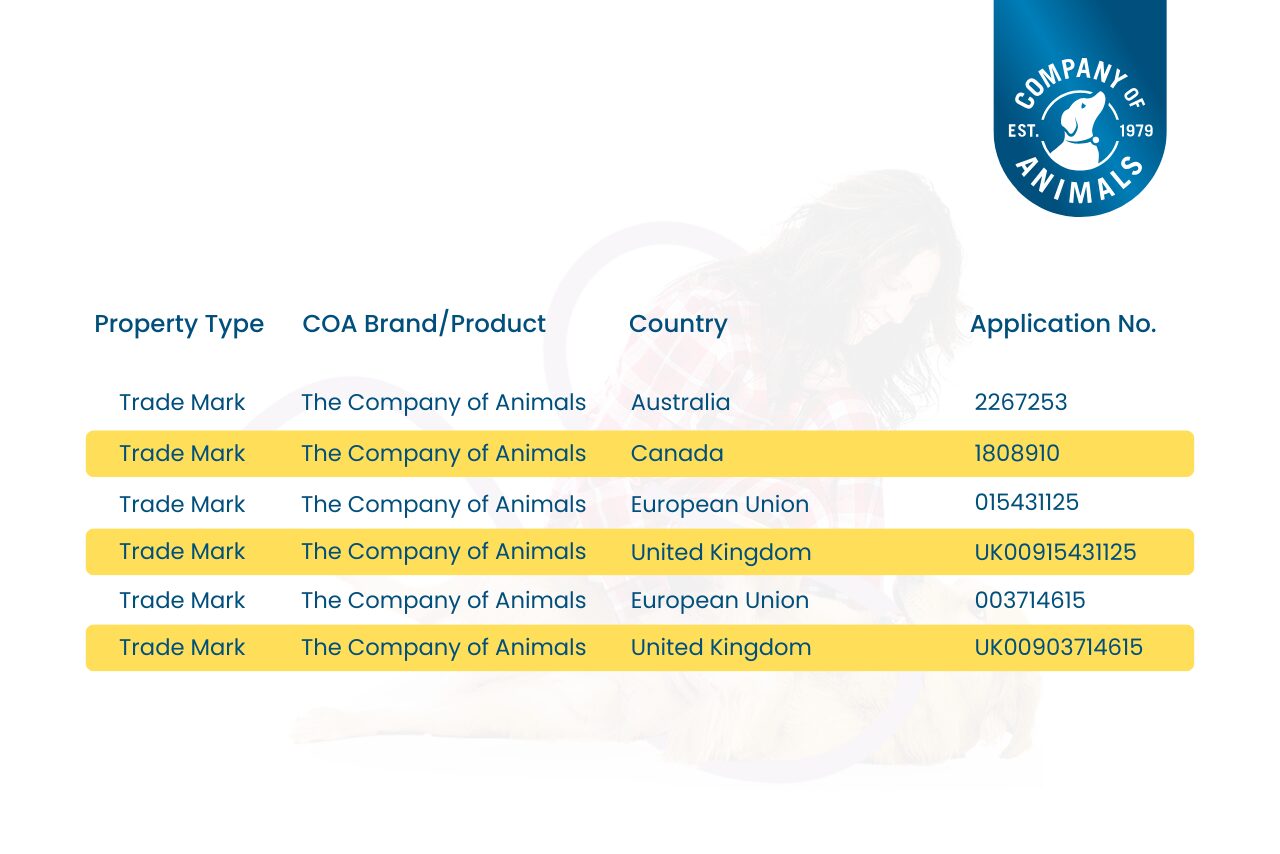 At The Company of Animals, we take great pride in our innovation, reflected in our extensive portfolio of intellectual property. With over 250 registered individual rights, including trademarks, patents, and designs, our intellectual property forms the foundation of our globally recognised brands and products. These rights are protected under applicable intellectual property laws and serve to safeguard the integrity and originality of our work. Any unauthorized use, reproduction, or misrepresentation of our intellectual property is strictly prohibited and may result in legal action. For further information about our intellectual property or to request permissions, please contact our legal team at office@wearecoa.com.