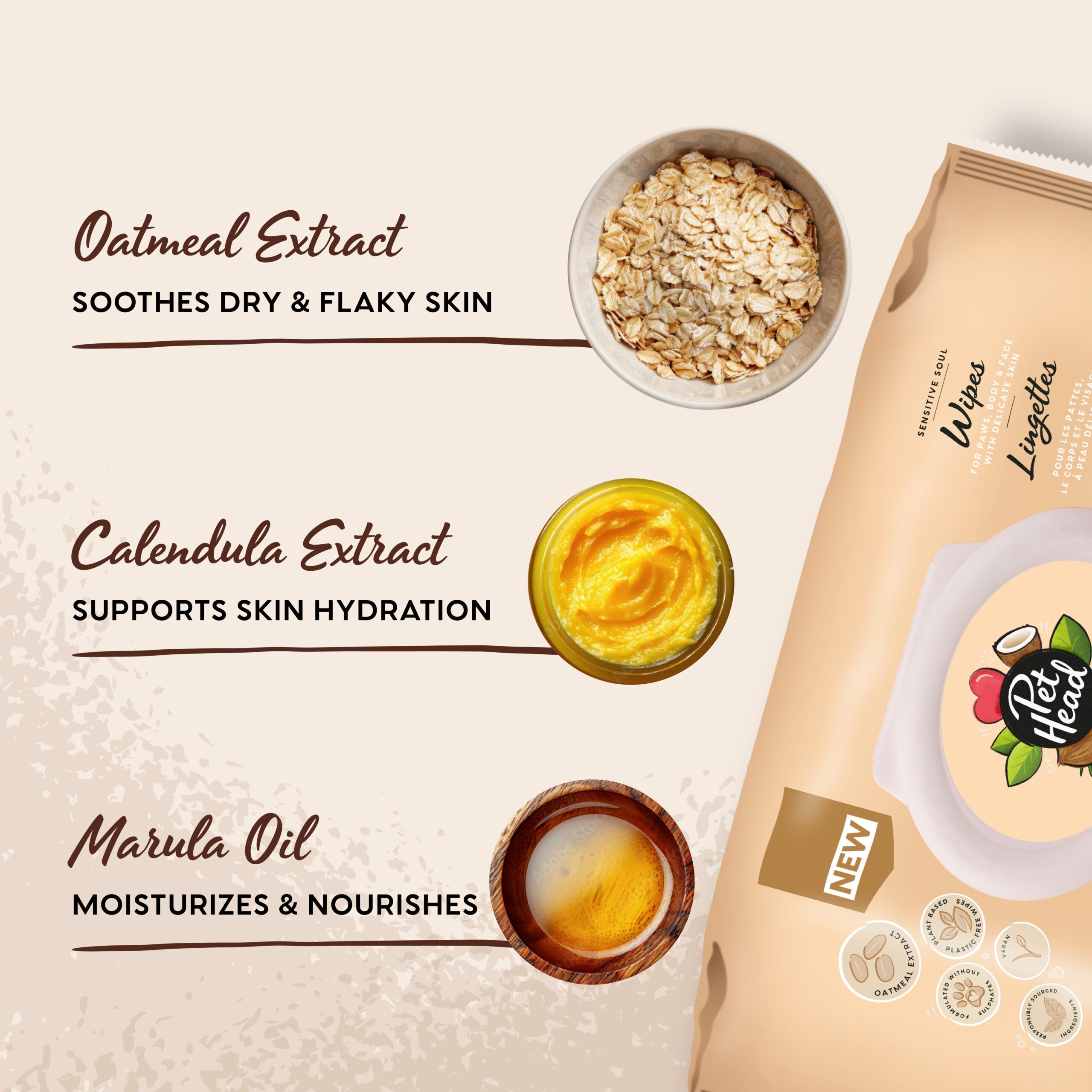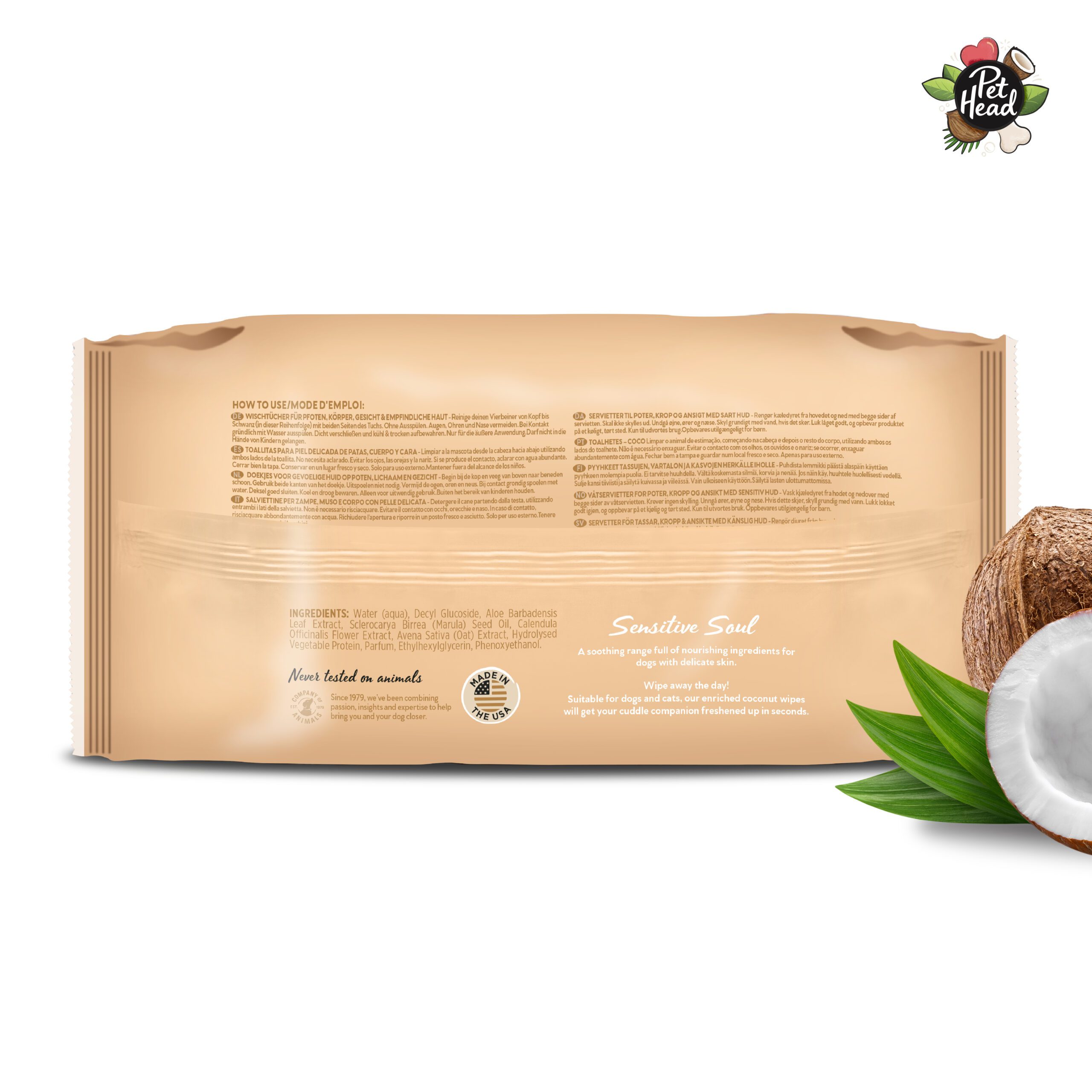 Clean your pet from head to tail with the Pet Head Sensitive Soul wipes for delicate skin. They are biodegradable, plant-based & plastic-free wipes.