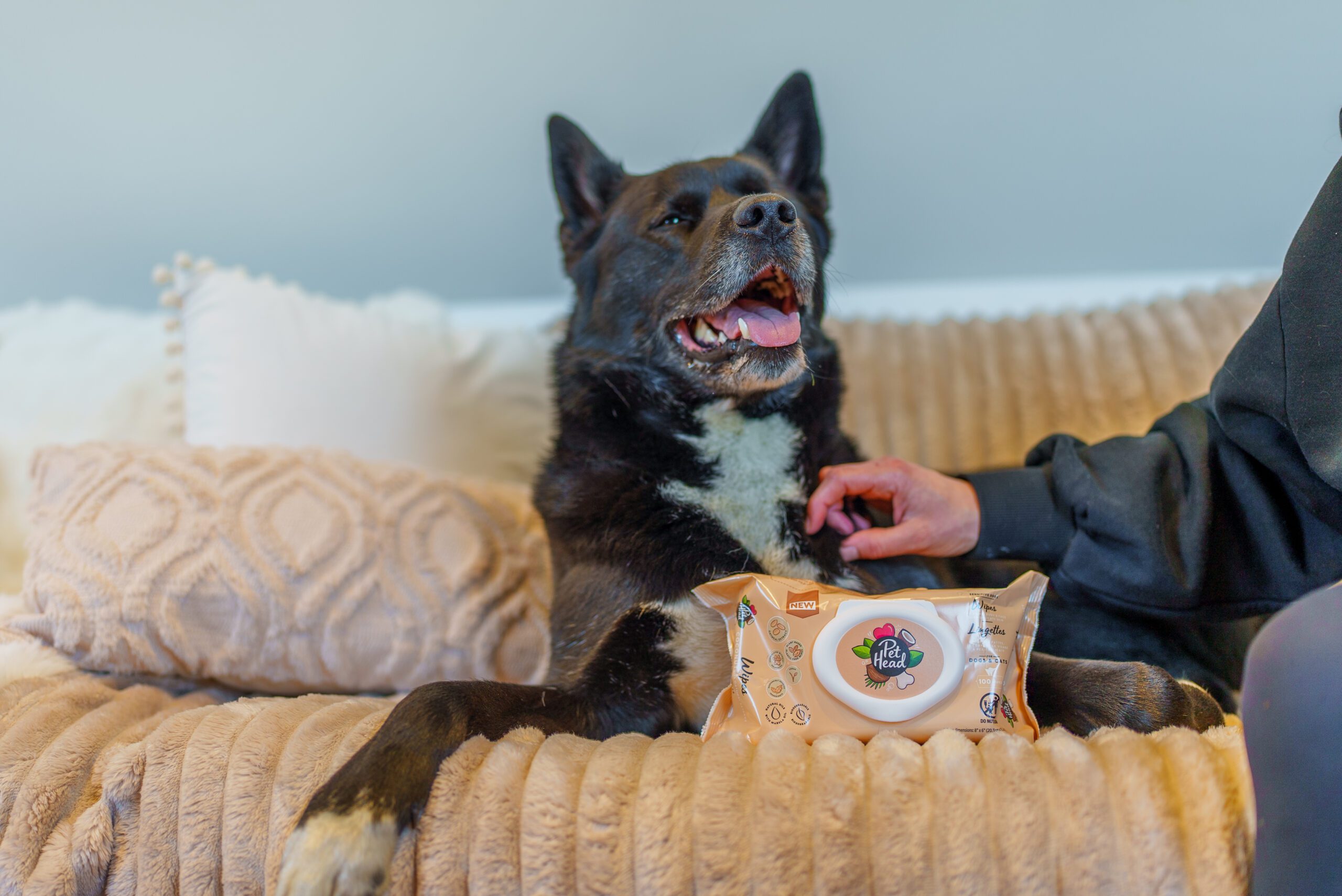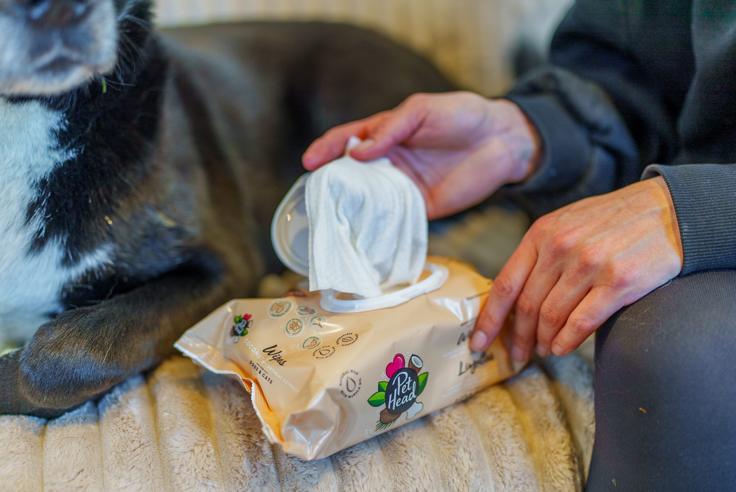Soothing wipes for paws, body & face full of nourishing ingredients for dogs and cats with delicate skin. Wipe away the day! Our enriched coconut wipes get your cuddle companion freshened up in seconds.