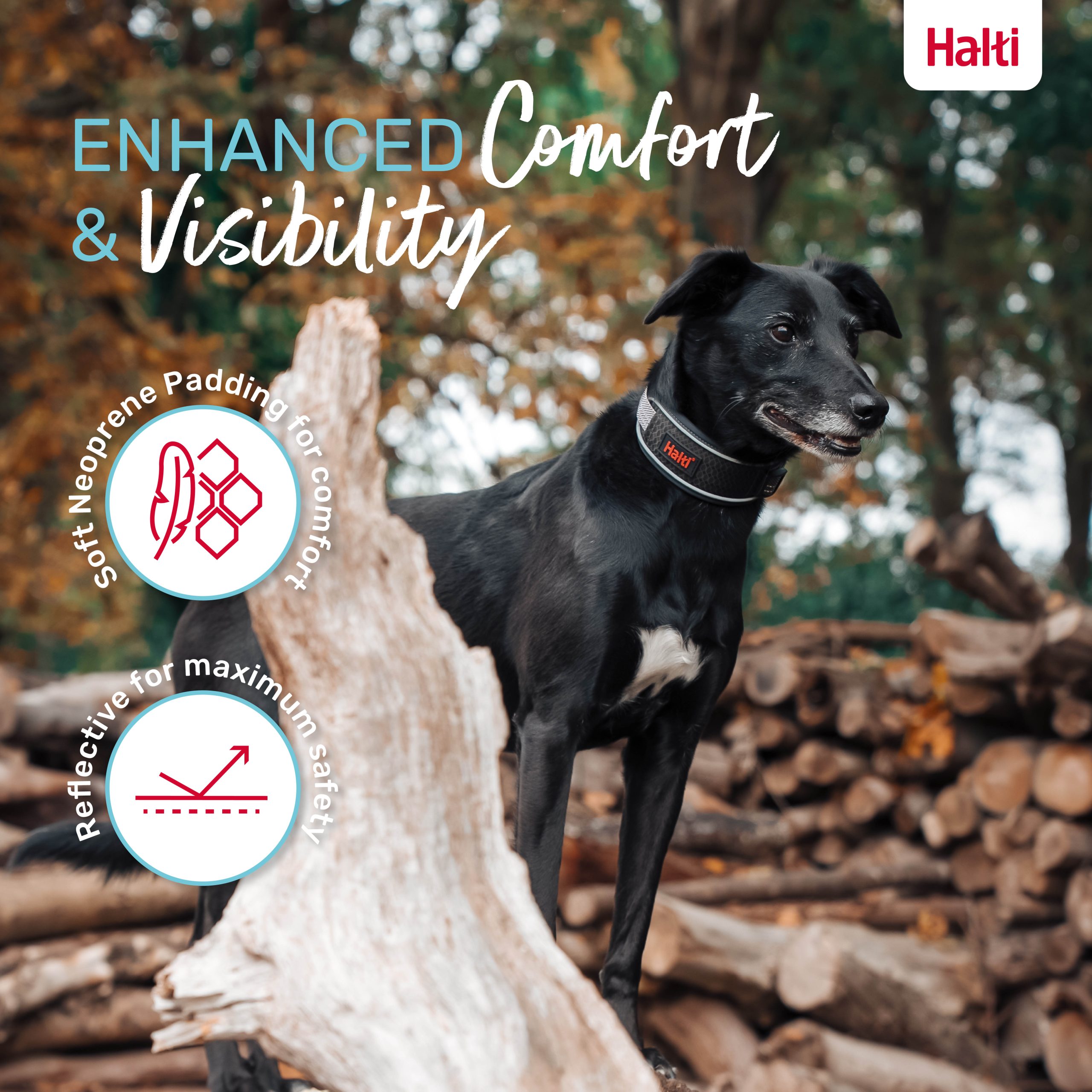 The Halti Anatomy Collar is a high quality, vet-recommended collar, designed with anatomical care; its broad shape spans two vertebrae, allowing pressure to be distributed evenly across the neck. This helps reduce strain on delicate throat tissue and supports healthy walking for dogs that pull or are sensitive to traditional collars. With soft neoprene padding, reflective detailing, and a strong X-buckle, this collar offers day-long comfort, reliable control, and everyday versatility.