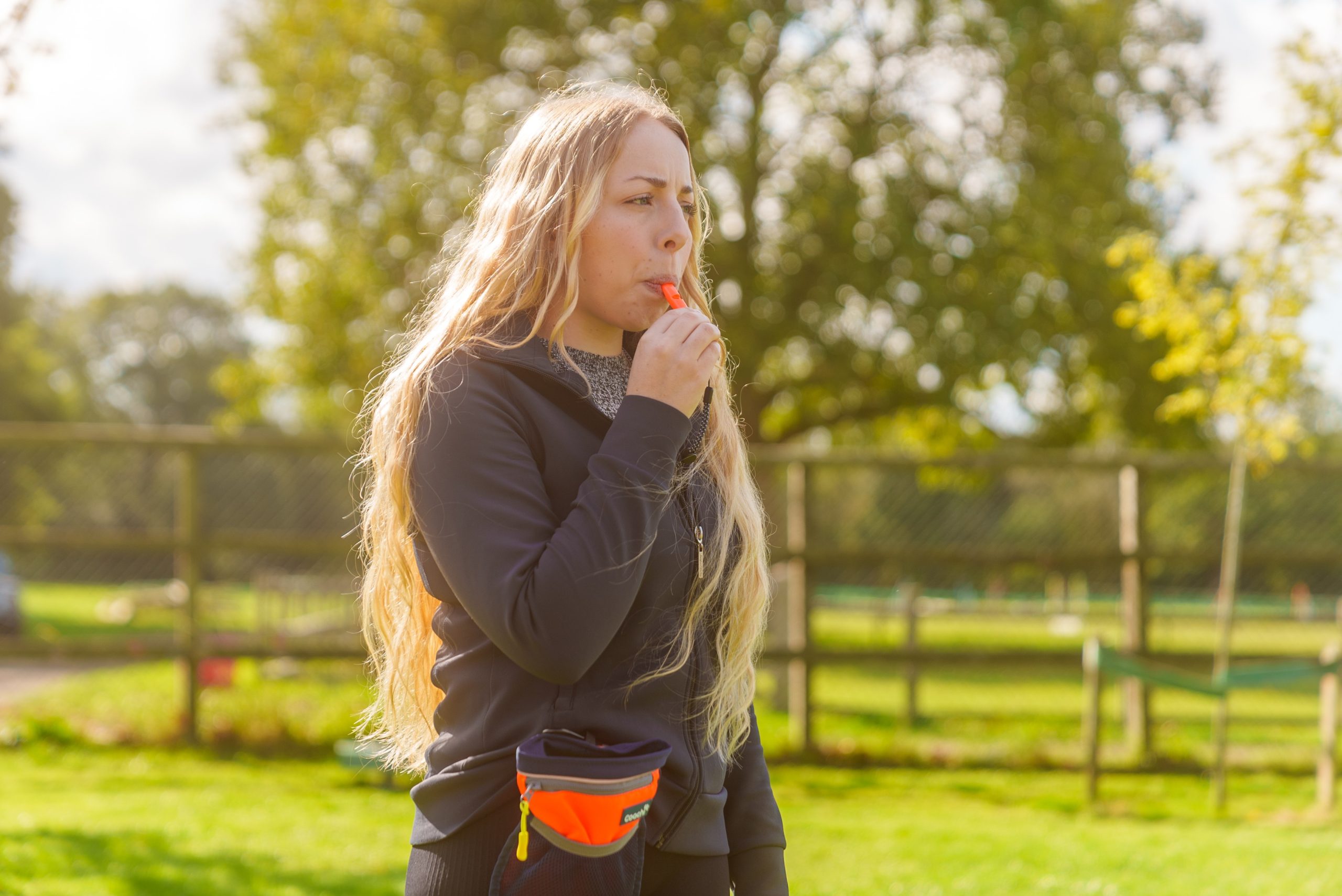Successful whistle training builds positive associations before introducing commands, then gradually adds distance and distractions.